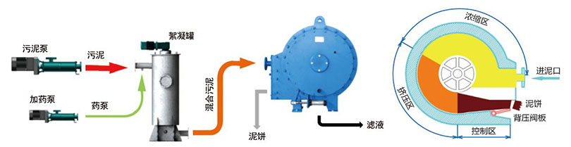 絮凝 | 包括外带密闭式搅拌装置的絮凝器,可优化絮凝,减少聚合物的浪费,无异味 | 絮凝发生在离心机内部,不易控制,聚合物利用率低消耗量大,增加经费 |